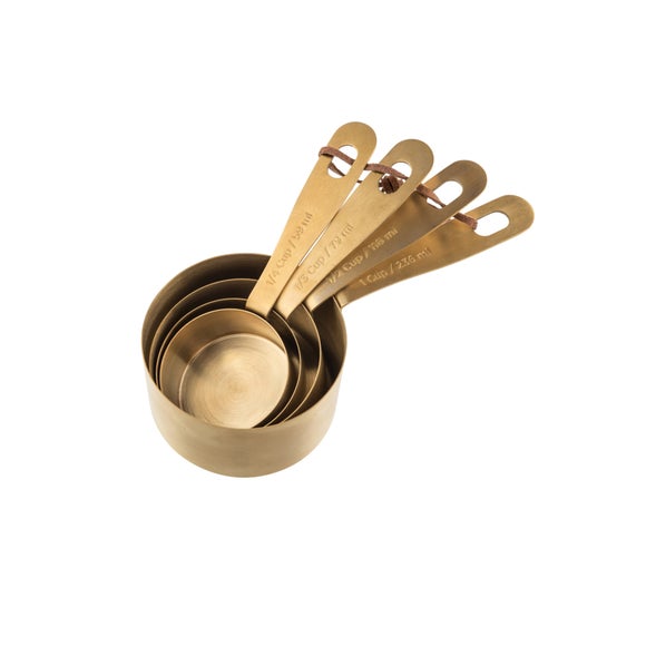 Add a touch of vintage charm to your kitchen with Kitchen Pantry Brass Measuring Cups. Perfect for precise baking, each cup features flat tops for accurate measures, ideal for UK and US recipes. Nest them neatly in a drawer or use the leather loop to hang them up for a stylish display. Crafted from solid brass, they're durable, practical and designed to last through countless bakes. Part of the Kitchen pantry collection, blending timeless materials with modern design to help you bake, make and create with ease.