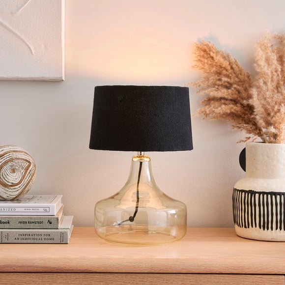 The Kunal Glass Table Lamp brings style to any space. An extension of Dunelm's Kunal range, this lamp is available in a variety of eye-catching colourways, each paired with a contrasting shade for added impact. Whether you're updating your bedside table or adding a finishing touch to your living room, the Kunal Table Lamp offers a sleek and versatile lighting solution.