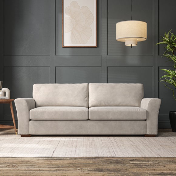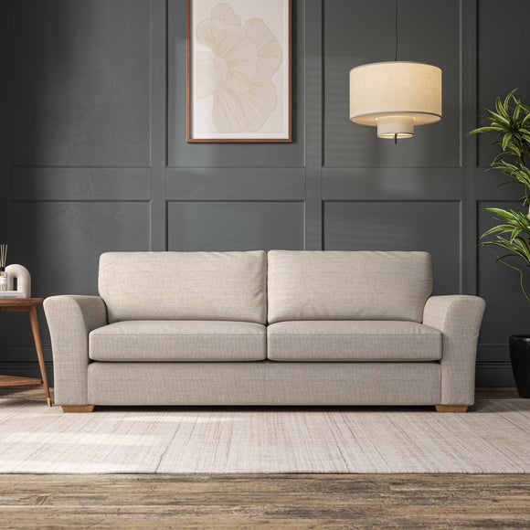 This sofa's spacious design, combined with softly swept arms and top-stitched accents, offers a sophisticated look. Generous fibre-filled back cushions provide outstanding support, while the choice of foam or ‘Qualofill Blue’ fibre seat fillings lets you personalise your comfort. Constructed with durable serpentine springs and solid hardwood legs in two finishes, this sofa offers an expansive, inviting seating solution for any living space.