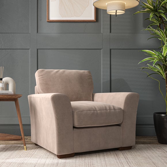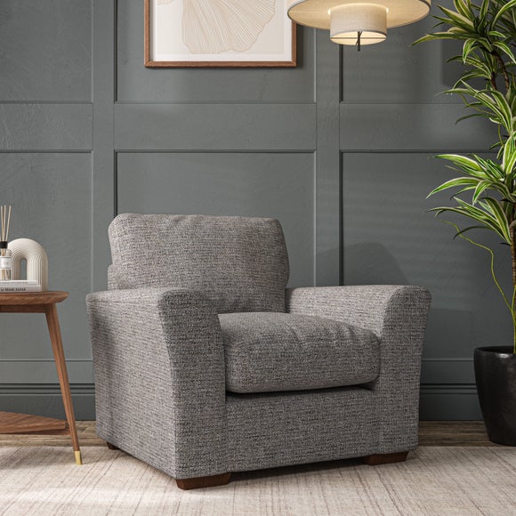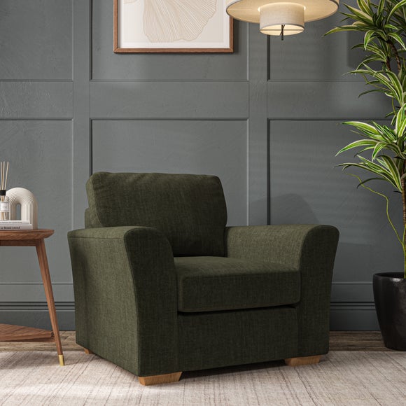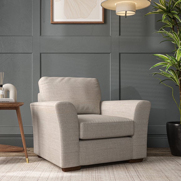 This armchair's soft, swept armrests and refined stitching details give it an elegant look. The fibre-filled back cushion offers outstanding support, while the seat can be customised with either foam or ‘Qualofill Blue’ fibre filling. Supported by durable serpentine springs and stylish hardwood legs in two finishes, this armchair is both supportive and stylish, making it a perfect accent for any living space.