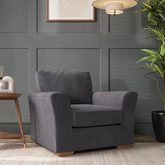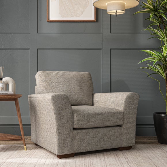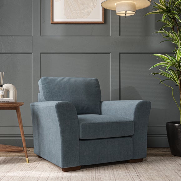 This armchair's soft, swept armrests and refined stitching details give it an elegant look. The fibre-filled back cushion offers outstanding support, while the seat can be customised with either foam or ‘Qualofill Blue’ fibre filling. Supported by durable serpentine springs and stylish hardwood legs in two finishes, this armchair is both supportive and stylish, making it a perfect accent for any living space.
