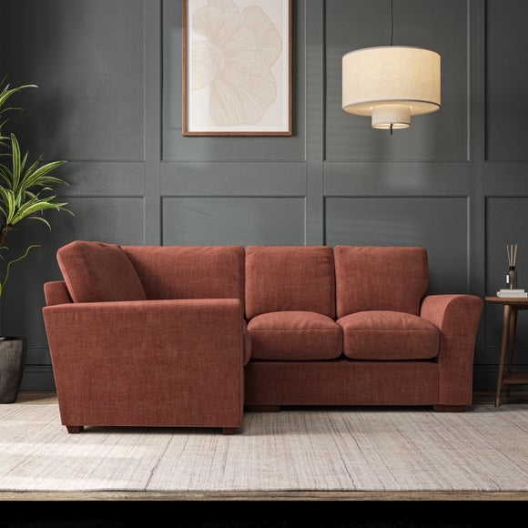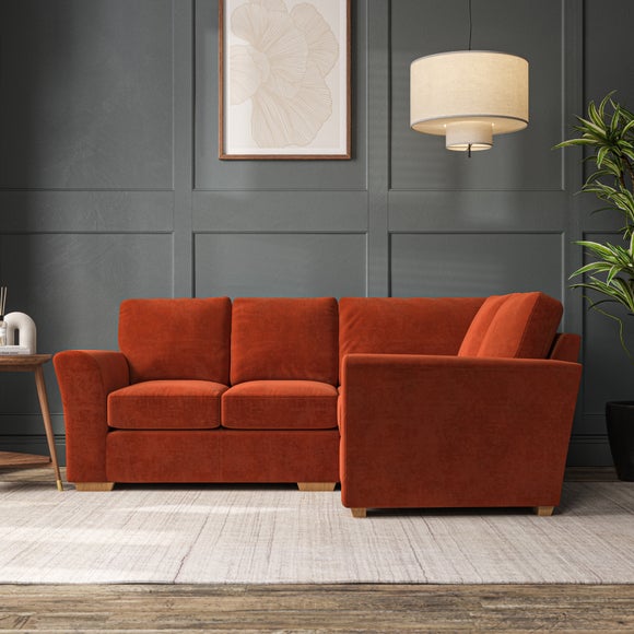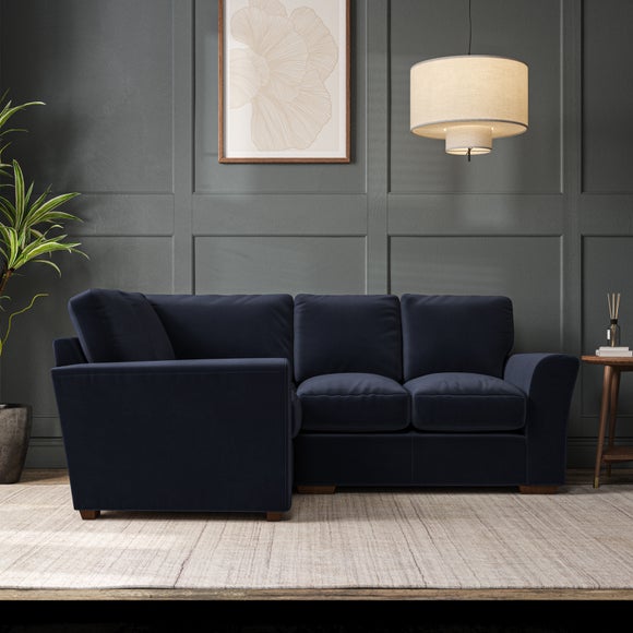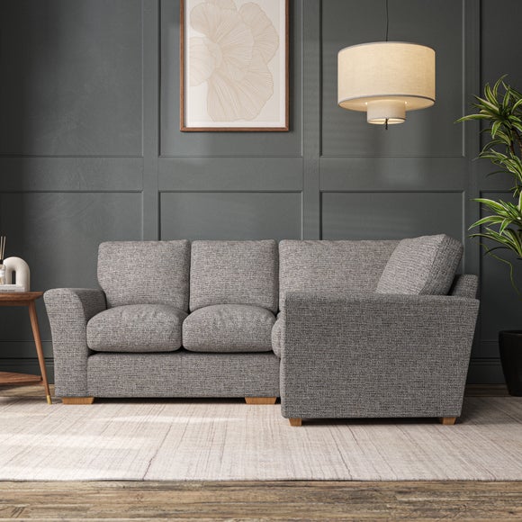 This corner sofa offers a stylish solution with its understated design and elegant swept arms. Generous, fibre-filled back cushions deliver superior comfort and support. Personalise your seating with a choice of foam or eco-friendly ‘Qualofill Blue’ fibre filling. Supported by serpentine springs and solid hardwood legs available in two finishes, this corner sofa blends comfort, durability, and refined design to enhance any living area.