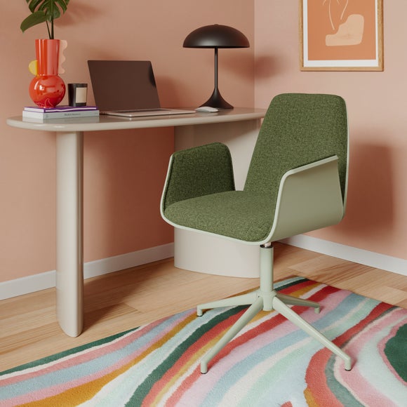 Bring colour and ergonomic comfort to your home office with the Leny low back office chair. The gently curved low back design is paired with tactile fabric and contrast wood accents for a fresh, modern feel. A height‑adjustable base allows you to tailor your seating position, making it ideal for long workdays or compact study spaces.