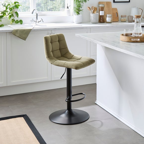 This bar stool features a gently curved backrest and a comfortable upholstered seat, supported by a smooth gas‑lift mechanism for easy height adjustment. The clean, modern shape makes it a versatile choice for breakfast bars and kitchen islands, offering everyday comfort with a simple, refined look.