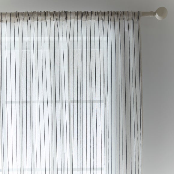 Finished with unique stripe detailing, this voile panel features a slot top header, meaning it is easy to hang. Perfect for maintaining privacy whilst still allowing some light penetration, this voile is available in a choice of sizes.