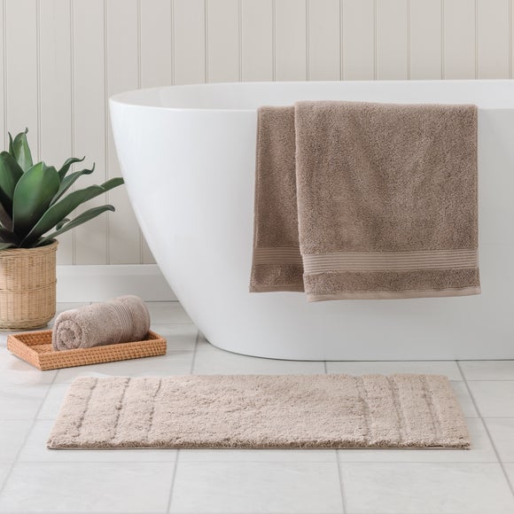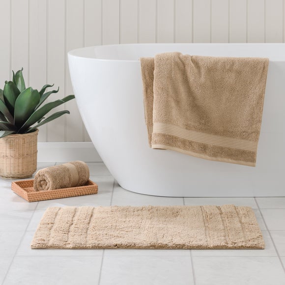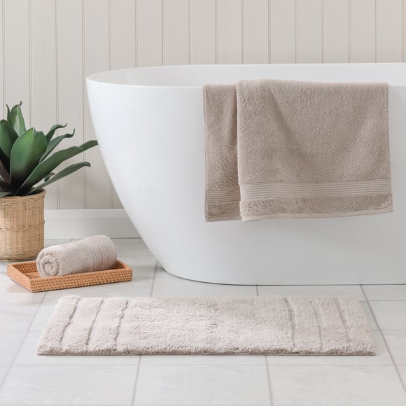 Step into comfort with our Luxury Cotton Textured Stripe Bath Mat. Made from 100% cotton with a dense pile, it feels thick, soft and supportive underfoot. The textured stripe detail adds a smart finish, while the high absorbency helps keep your bathroom floor dry. It’s machine washable too, so it stays looking fresh. Designed to coordinate beautifully with our best-selling Egyptian Cotton towel range, it’s available in a wide choice of colours, shapes and sizes.