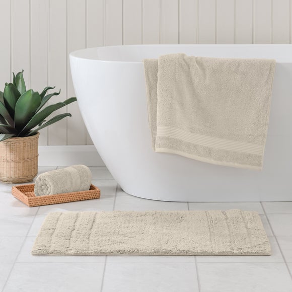 Step into comfort with our Luxury Cotton Textured Stripe Bath Mat. Made from 100% cotton with a dense pile, it feels thick, soft and supportive underfoot. The textured stripe detail adds a smart finish, while the high absorbency helps keep your bathroom floor dry. It’s machine washable too, so it stays looking fresh. Designed to coordinate beautifully with our best-selling Egyptian Cotton towel range, it’s available in a wide choice of colours, shapes and sizes.