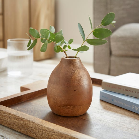Add a touch of organic style to your home with this mango wood bud vase. Its simple, rounded shape and natural grain make it a stylish way to display a single stem or sprig of greenery. The warm tones blend beautifully with modern and rustic décor alike. Place it on a tray, shelf, or side table for an understated yet elegant accent.