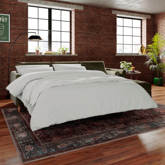 The Max Velvet Corner Storage Sofa Bed is the ultimate combination of style and functionality. Upholstered in sumptuous velvet, it brings a touch of luxury and sophistication to any home. The clever design features a pull-out bed for guests and a hidden storage compartment in the chaise, ideal for keeping bedding or throws neatly tucked away. Natural wooden legs add a classic finishing touch, while the generous seating ensures comfort for everyday lounging. A versatile piece that blends modern elegance with practical convenience. Choose from left or right corner options to suit your home.