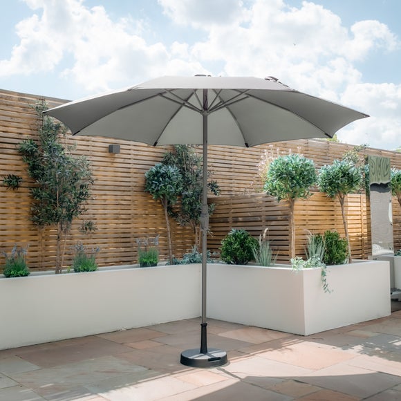 Create comfortable shade outdoors with the Maze Capri 2.7m Round Parasol, designed to suit patios, decking and outdoor dining areas. The round canopy offers UV protection while the soft Clay Beige tone brings warmth to your space. A built‑in tilt mechanism allows you to adjust coverage as the sun moves throughout the day. The parasol opens and closes smoothly using a crank handle, making it easy to use day to day. A grey powder‑coated steel pole supports the canopy for reliable outdoor performance. Reinforced with eight steel and fibreglass ribs, the structure is built to stay steady during regular use.