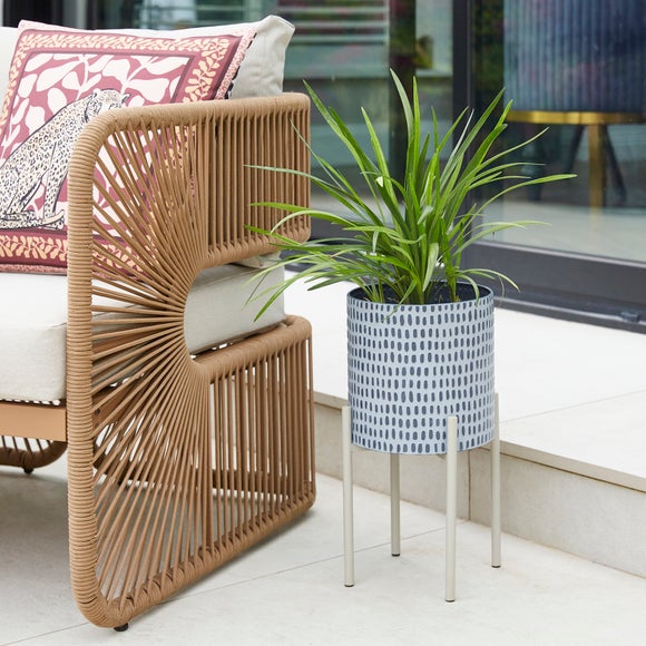 Hand-crafted with a sleek, contemporary finish, this piece offers a stylish way to showcase your favourite plants. The sturdy metal pot sits on a reversible stand, allowing you to adjust the height to suit your space and create visual interest.