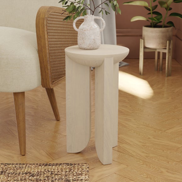 The Mika side table is crafted from solid mango wood and is available in a variety of finishes including dark mango, whitewash and golden. Designed with a clean, compact and unique silhouette, its a versatile accent piece suitable for a range of interior styles, combining natural texture with timeless appeal.