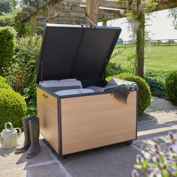 The Norfolk Leisure Royce Medium 483L Storage Box is a great choice for keeping outdoor bits and bobs organised, without taking up too much space. The piston-assisted lid gives you a smooth, easy lift and a gentle close, making it simple to dip in and out whenever you need something. With integrated side handles and built-in wheels, it’s easy to move around the patio or garden, ideal if you like to rearrange your setup with the seasons (or the sunshine). Perfect for storing smaller cushions, gardening accessories, or outdoor toys, it’s a fuss-free way to keep clutter under control.