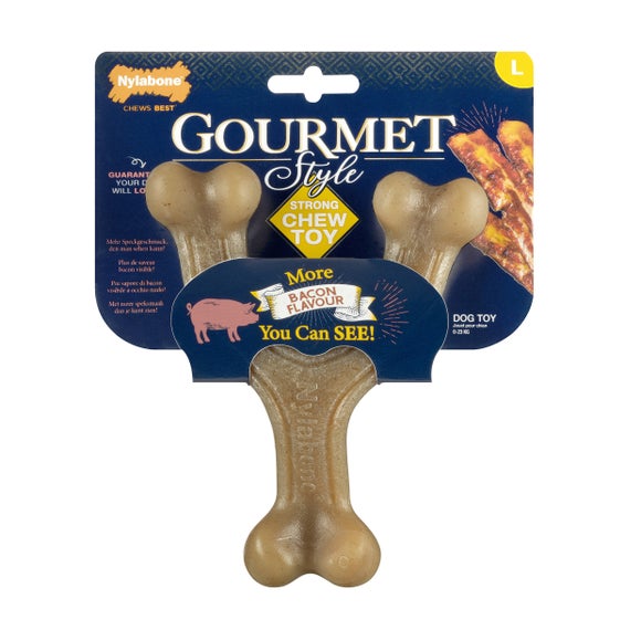 Give your dog a flavour‑packed chewing experience with the Nylabone max strong gourmet wishbone dog chew, designed for powerful chewers who crave bold taste and lasting satisfaction. Made from tough, durable nylon with visible flavour bits infused throughout, this wishbone‑shaped chew encourages comfortable gripping and multi‑angle chewing while helping to clean teeth and freshen breath with every bite. Bursting with irresistible bacon flavour, it’s perfect for keeping determined chewers engaged, supporting healthy dental habits and satisfying natural chewing instincts.