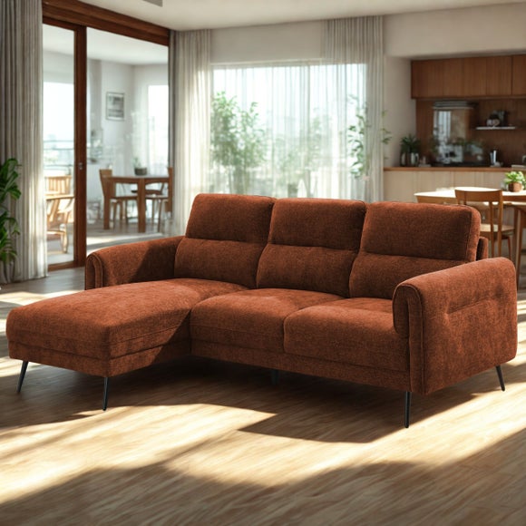 The Oakley Chenille Corner Chaise Sofa combines retro-modern style with generous comfort, making it ideal for relaxing and socialising alike. Its curved arms and signature fold detailing add a sophisticated finish, while the plush chenille fabric creates a warm and inviting look. With spacious seating and supportive foam and fibre cushions, this corner chaise sofa offers the perfect balance of comfort and design, giving you plenty of room to stretch out at the end of the day.