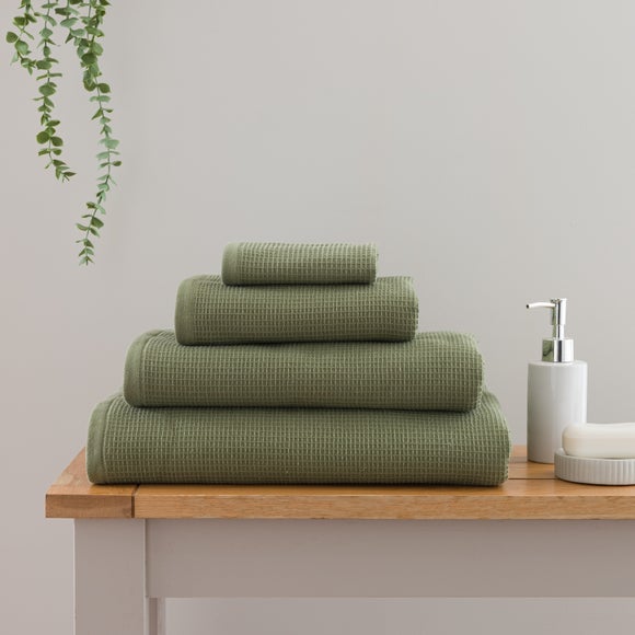 This collection of 100% organic cotton towels has a textured waffle finish and are reversible for a different look. The 650 GSM weight gives these towels an exceptionally soft feel. Whether you're showering after a long day or taking your time in a luxurious spa-like bath, these towels are the perfect companion to cocoon yourself in. Highly absorbent and available in a choice of colours and sizes, this is the ideal collection for a relaxed and stylish bathroom aesthetic.