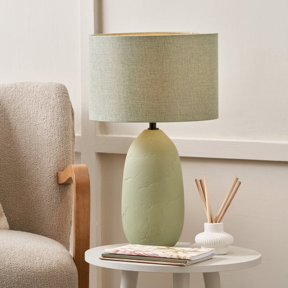 The Pacific Lifestyle Erika Textured Table Lamp features a dome‑shaped base with a natural, crackled texture for quiet depth. Finished with a linen‑effect cylinder shade and a convenient in‑line switch, it brings tactile interest to modern, laid‑back schemes.