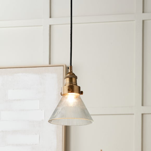 The Pacific Lifestyle Lenox Adjustable Electrified Pendant Light brings an industrial‑inspired edge with a stylish, clear ribbed conical glass shade that scatters light beautifully. Handcrafted in India with a height‑adjustable drop, it’s an easy way to set the mood — bright and practical by day, warm and atmospheric by night.