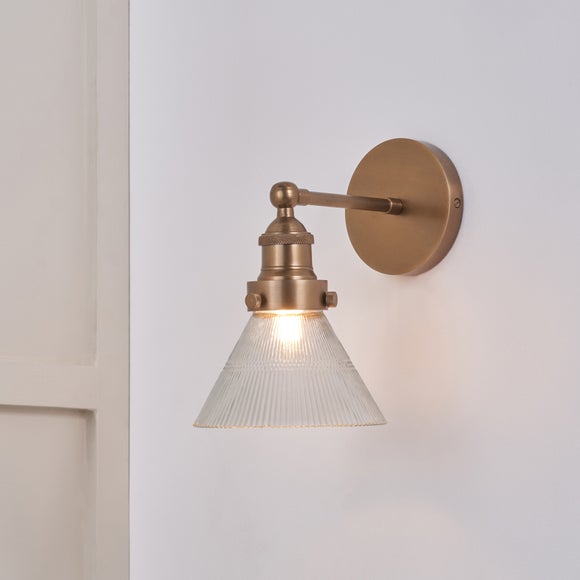 The Pacific Lifestyle Lenox Ribbed Wall Light offers clean, industrial‑inspired design with a clear, ribbed conical glass shade that refracts light for gentle dimension. Handcrafted in India, it’s a refined way to add task or accent lighting — smart, space‑saving, and effortlessly stylish.