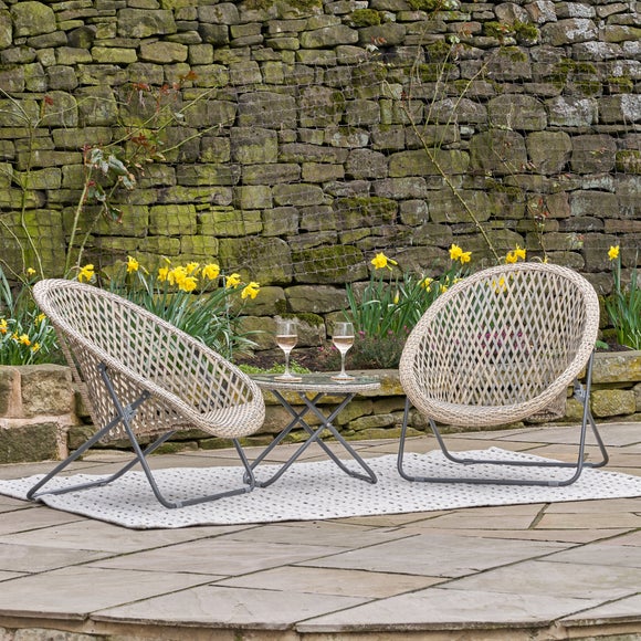 The Pacific Lifestyle Tobs Foldable Outdoor Loungers Set is a smart and relaxed choice for making the most of sunny days. Crafted from a durable faux rattan weave and finished with a sturdy powder coated steel frame, it offers a stylish look that’s made to last. The foldable design makes it easy to store away when not in use, while the tempered glass tabletop adds a practical touch for drinks, books or snacks as you unwind. Available in a range of colourways, this set is an easy way to create a comfortable outdoor spot that suits your space and style.