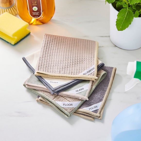Make everyday cleaning a breeze with this handy pack of five multipurpose cloths. Each cloth is clearly labelled for different tasks, so you’ll always grab the right one for the job. Designed to tackle a variety of surfaces, they’re perfect for wiping, polishing, and freshening up around the home. Durable yet soft, they’re gentle on your hands while tough on dirt. Easy to wash and reuse, they’re a practical choice for keeping things spotless. Bright and natural colours add a cheerful touch to your cleaning routine.