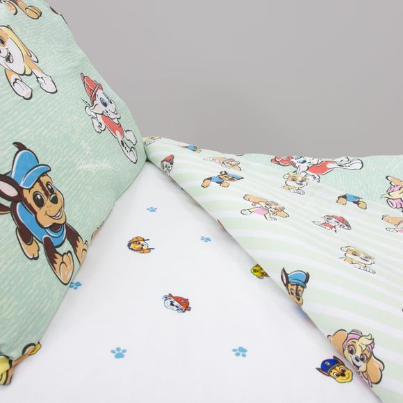 Little Paw Patrol fans will love drifting off with their favourite pups thanks to this officially licensed junior fitted sheet. Covered in a playful repeat of Chase, Skye, Marshall and Rubble with bright blue paw prints, it brings a cheerful touch to toddler and junior beds. The fully elasticated hem helps the sheet stay neatly in place, even on busy nights. It’s quick to fit and easy to remove, making wash days smooth and stress‑free. Soft and comfortable to sleep on, it’s ideal for everyday use for little ones who adore the Paw Patrol team.