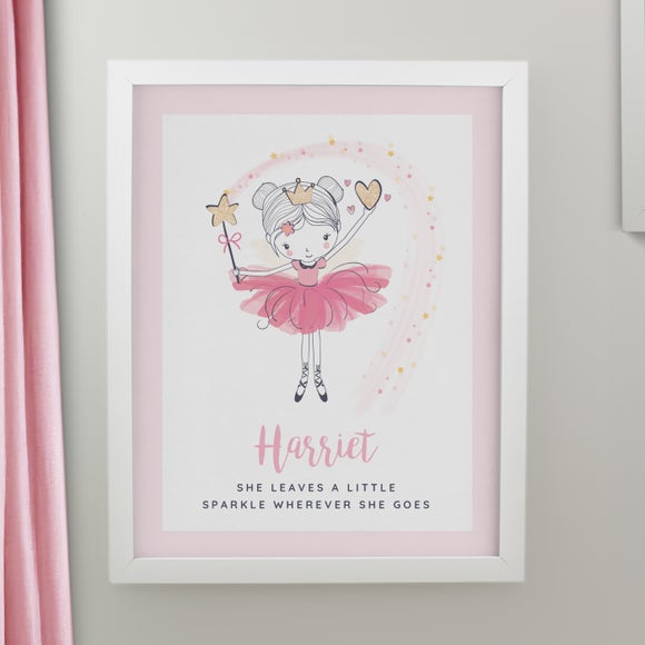 Transform any space into a magical haven with the personalised princess ballerina poster frame, a beautifully designed piece that adds elegance and charm to your child’s room. Featuring a graceful ballerina illustration in soft pastel tones, this print brings a sense of wonder and sophistication to any nursery or bedroom.