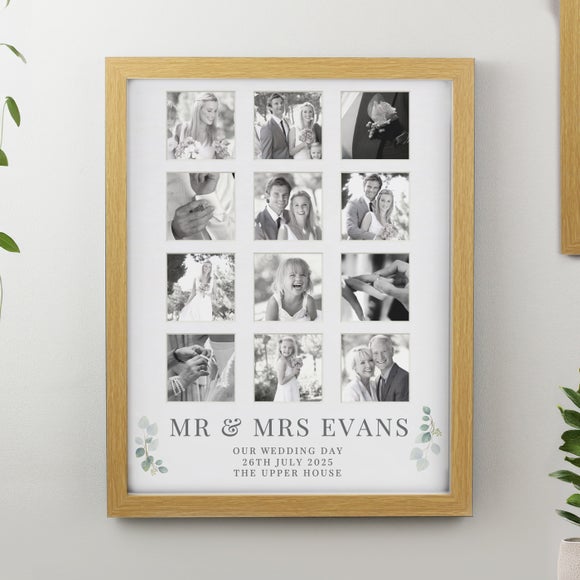 Celebrate the magic of your special day with the personalised multi photo frame, a beautiful way to showcase twelve treasured photographs in one elegant design. Perfect for newlyweds or as a thoughtful anniversary gift, this frame turns unforgettable moments into a stunning display. Featuring subtle botanical accents and available in oak, black or white finishes, it adds timeless charm to any home décor.
