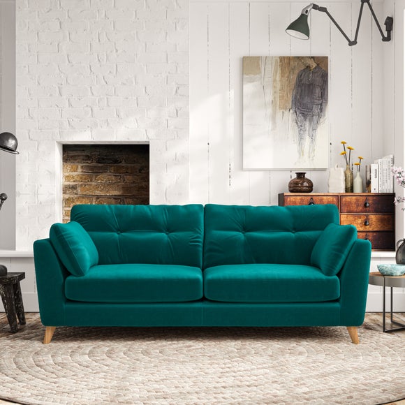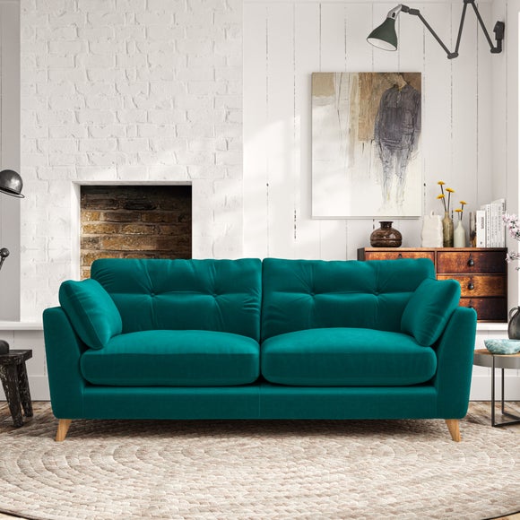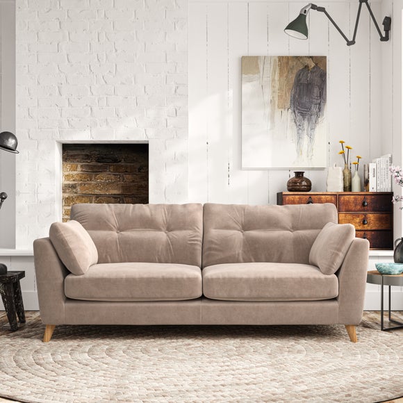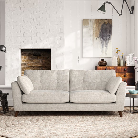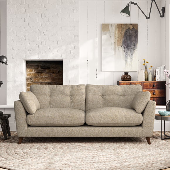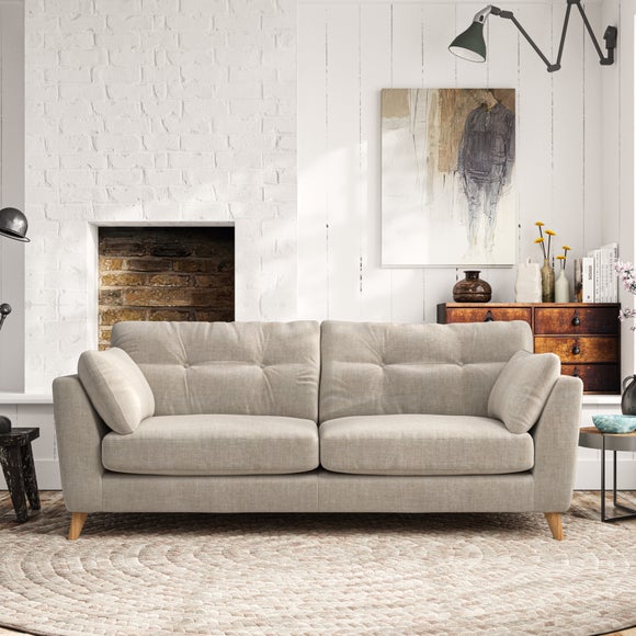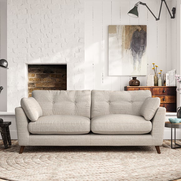 With its high legs and plush fibre-filled arm pads, this sofa provides a stylish yet inviting atmosphere. The button-pull details on the supportive, fibre-filled back cushions enhance its elegant design, while the higher back cushions ensure excellent support for your back and shoulders. You can customise your Peyton sofa by choosing between a low-maintenance foam seat or a more relaxed 'Qualofill Blue' fibre seat for added comfort. Featuring serpentine seat springs for durability and long-lasting support, the sofa is also equipped with splayed hardwood legs available in two finishes, allowing for a personalised touch.