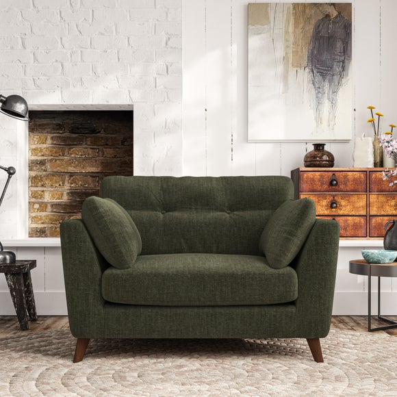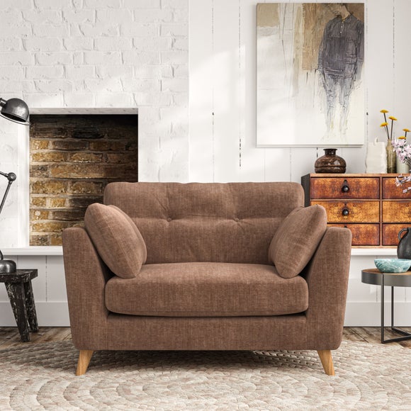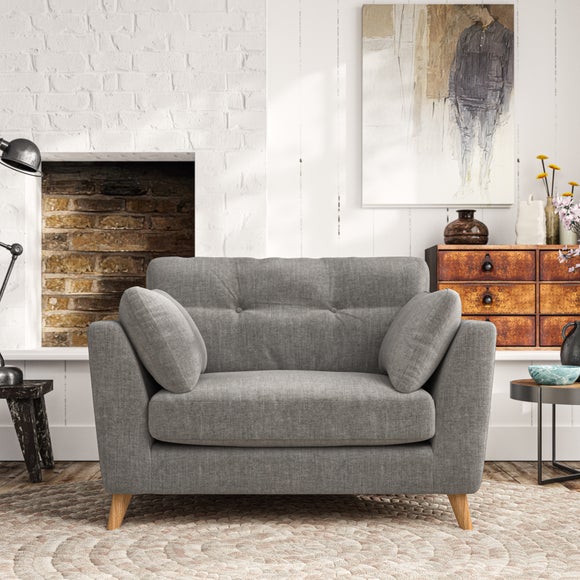 This chair showcases mid-century style with its elegant silhouette and plush pillow top arms, offering a perfect blend of comfort and sophistication. The button pull details on the supportive back cushions add a refined touch, enhancing its classic appeal. Customise your chair to suit your personal taste by choosing from a variety of fabric types, leg colours, and cushion fillings, allowing you to create a piece that perfectly fits your living space.