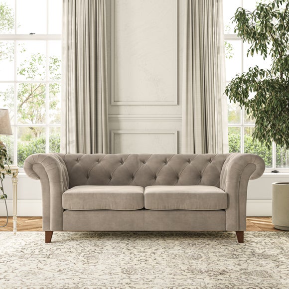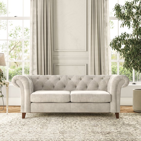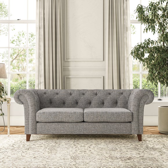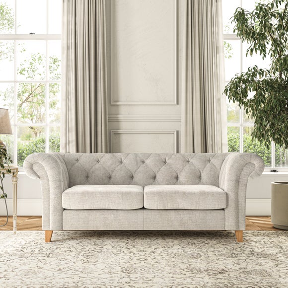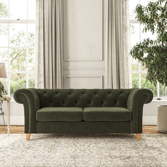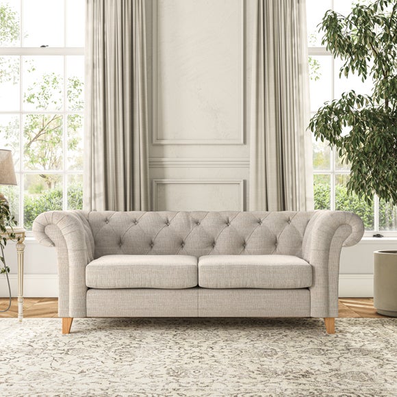 This sofa's authentic Chesterfield design showcases generously scrolled arms and deep buttoning detail, adding a refined touch to your home. Built with longevity in mind, the sofa features serpentine seat springs for long-lasting comfort and a Superloop sprung back for excellent support. You can choose between a supportive, easy-care foam seat or a more relaxed and inviting 'Qualofill Blue' fibre seat, crafted from 100% recycled polyester, including post-consumer and ocean plastics. The self-sewn seat cushions offer a more contemporary feel, while the hardwood legs, available in two attractive finishes, provide a bespoke touch and are easy to fit.