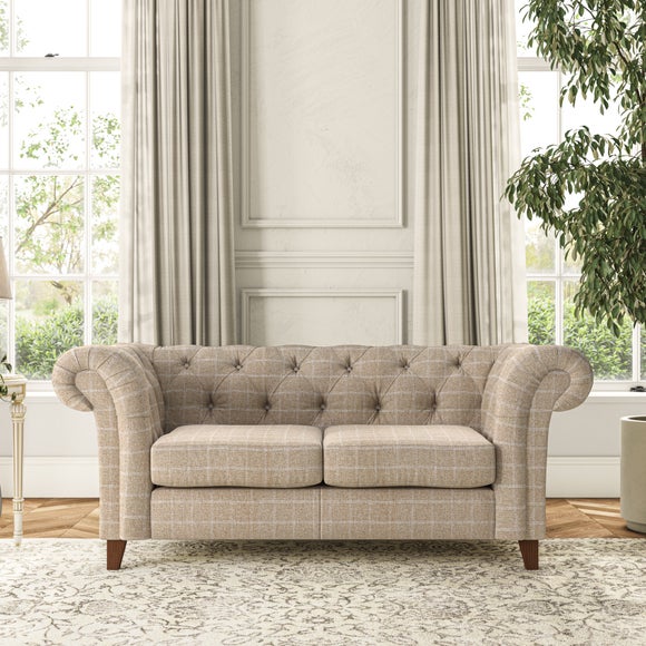 This sofa's traditional Chesterfield design, complete with generously scrolled arms and deep buttoning, brings an air of timeless elegance to your home. Built with longevity in mind, the sofa features serpentine seat springs for lasting comfort and a Superloop sprung back for excellent support. You can choose between a supportive foam seat for low-maintenance care or a more relaxed 'Qualofill Blue' fibre seat, crafted from 100% recycled polyester, including post-consumer and ocean plastics. The self-sewn seat cushions offer a more contemporary feel, while the hardwood legs, available in two finishes, provide a customisable and stylish touch, and are easy to fit.