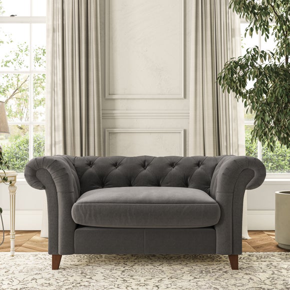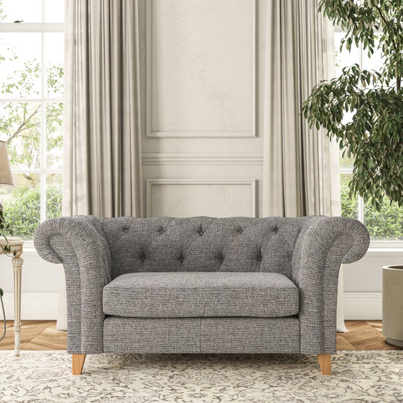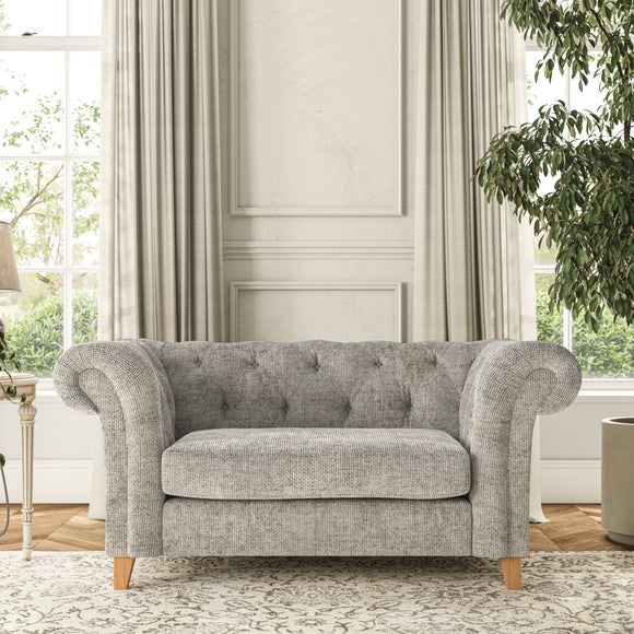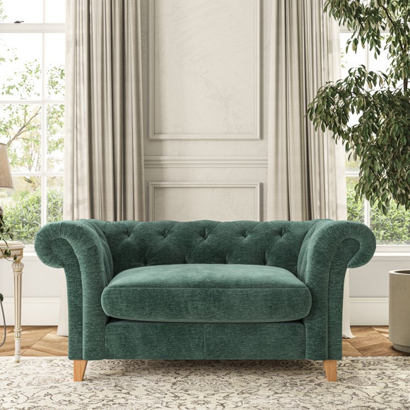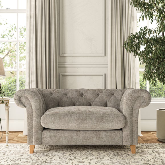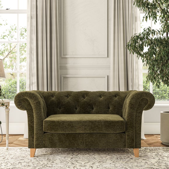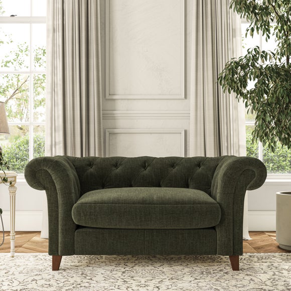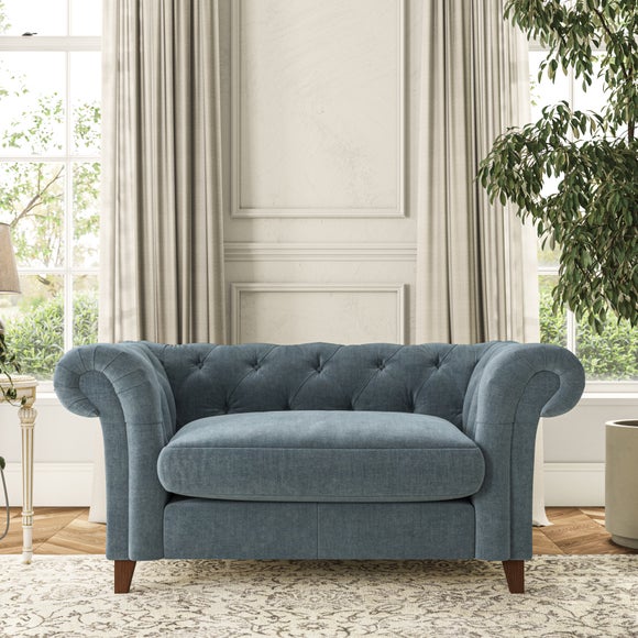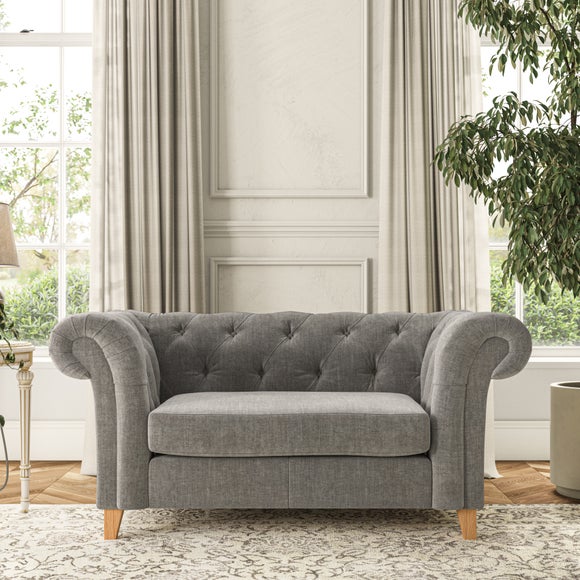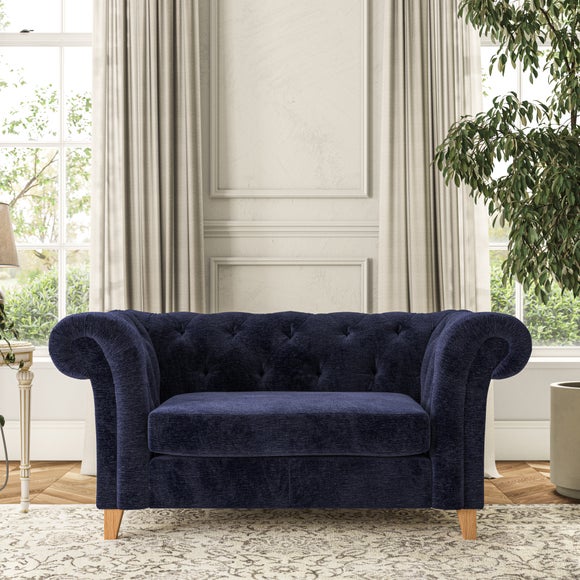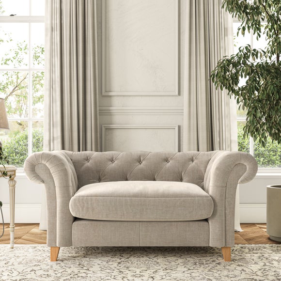 Featuring an authentic Chesterfield design with generously scrolled arms and striking deep buttoning, this chair adds a touch of sophistication to your living space. Built for both style and durability, it includes serpentine seat springs for lasting comfort and a Superloop sprung back for superior support. You can choose between a supportive, low-maintenance foam seat or a more relaxed 'Qualofill Blue' fibre seat, which is made from 100% recycled polyester, including post-consumer and ocean plastics. The self-sewn seat cushions lend a contemporary edge to the traditional design, while the hardwood legs, available in two finishes, offer a customisable touch and are easy to fit.