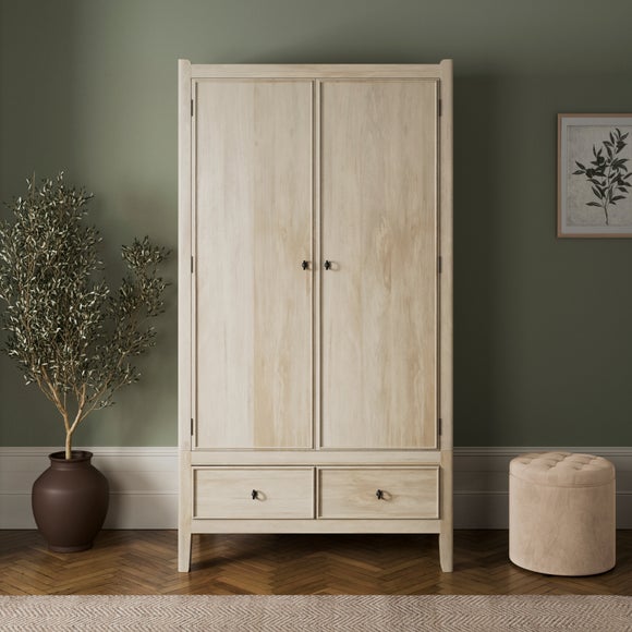 The Portland Double Wardrobe offers a classic design brought to life in beautifully made mango wood, available in two finishes to suit your space. Its clean, balanced shape fits comfortably into both modern and traditional bedrooms. Inside, you’ll find generous hanging space for clothing, with two lower drawers giving you extra room for everyday essentials. Soft edges and thoughtful detailing help create a calm and well-put‑together look. A versatile piece that pairs effortlessly with the rest of the Portland collection.