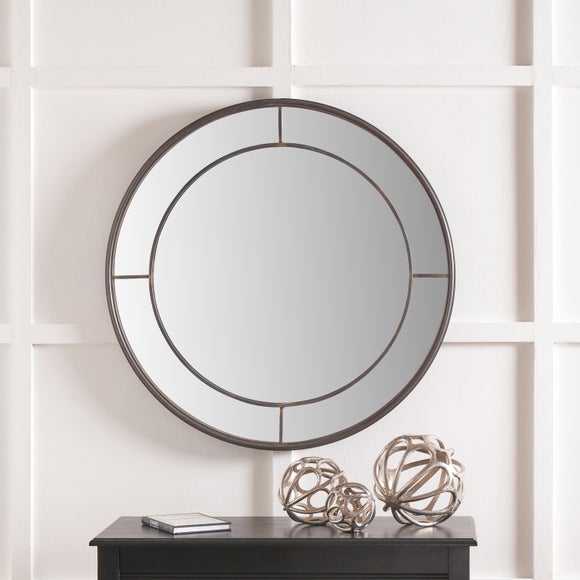 The well proportioned circular mirror with inner frame detailing, is sure to make maximum impact due to its scale and stunning design. The iron frame is finished in an antique bronze colour, which will look fabulous in a multitude of interior styles. Place the mirror in your entrance hall to create a statement, or in your living room, bedroom, or even on your landing to provide maximum light through your interior. Not suitable for bathroom use.