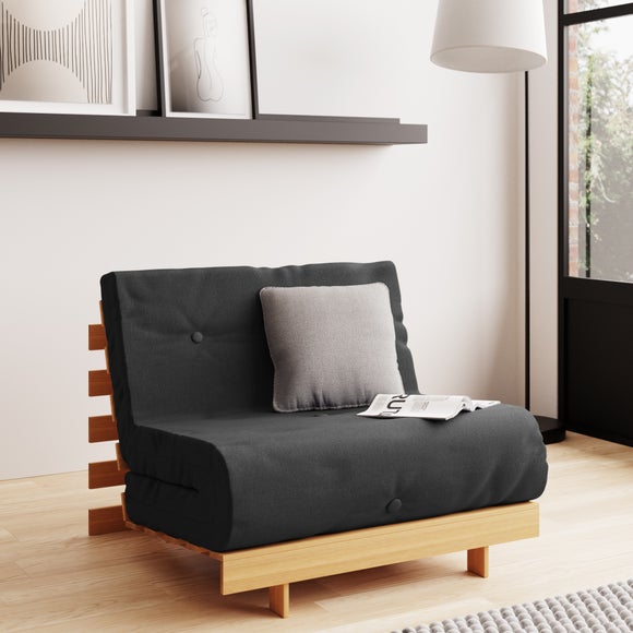 A handy, versatile futon for the modern home in a timeless design to complement any decor. The Mito Single Futon features a great space saving solution for where space is at a premium. This Futon folds out easily from a seat to a comfortable single bed for guests. The Mito Single Futon is constructed from solid pine and comes complete with a quality fibre blend button design mattress.