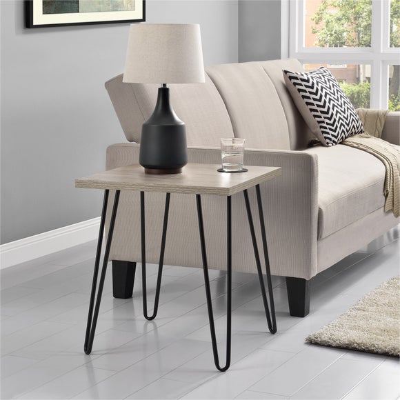 Give your living room, office or kitchen a modern, industrial feel with the Owen Retro End Table. Crafted with a slim profile, sleek, sturdy and compact, making it great for small to medium-sized rooms. The finish and black hairpin legs makes this accent table look great in your room. Place your reading lamp, remotes or pictures on the table top to add style and organization to your space.