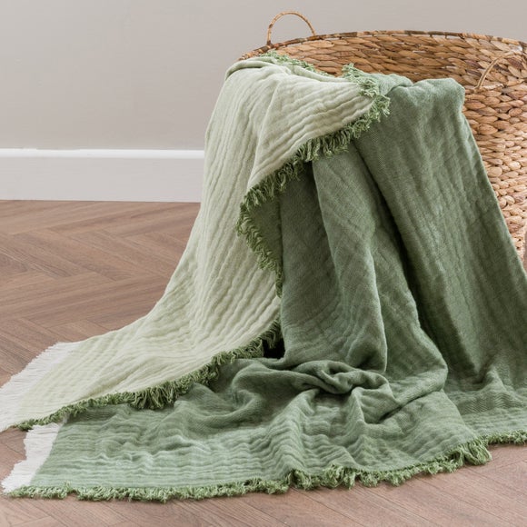 Wrap up in comfort with the Reversible Muslin Cotton Throw. Made from 100% cotton with a textured look and fringed edges, this soft, stylish throw is as practical as it is beautiful – and machine washable too.