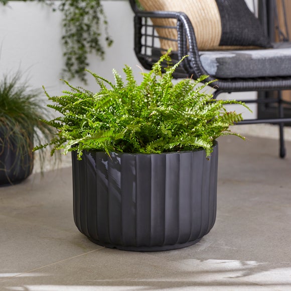 Showcase your favourite plants in this elegant ribbed plant pot, designed to complement any space. Made from strong yet lightweight fibre clay, it offers durability without compromising on style. Its natural finish and textured ribbed detail add a modern touch to patios, balconies, or indoor corners. Resistant to UV and frost, this versatile pot is perfect for year-round use and is available in a choice of colours and sizes.