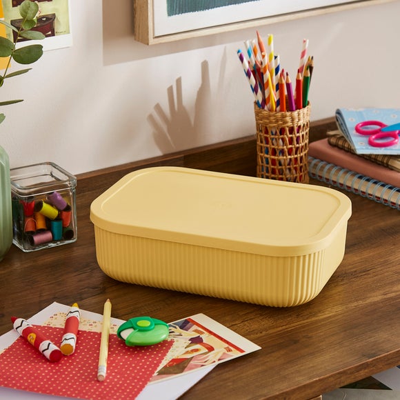 Inject some joy in tidying up with the wonderfully sleek ribbed storage basket. Available across a range of size options, this is just the thing to optimise and organise any space. Its contemporary ribbed design brings a sophisticated flair to any room, making it not just a storage solution but a stylish décor piece too. Built to stand the test of time with its durable construction, this box offers long-lasting practicality, while the nestable feature makes it easy to store away when not in use. The adorable baskets are complete with a lid, keeping your belongings secure and dust-free, adding an extra layer of functionality.