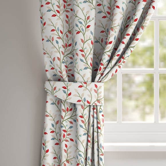 Timeless and elegant, the Rowen Made to Order tiebacks showcase a multi coloured embroidered leaf trail design consisting of vibrant red, green, and blue tones. Great for introducing colour into your room or an uplifting nod to nature. The embroidered detail adds richness and texture for a more premium feel. Crafted from a polycotton blend, these tiebacks are highly durable, soft, and breathable. Made to retain their colour over time. Pair with our coordinating Made to Measure curtain for a bespoke finish.