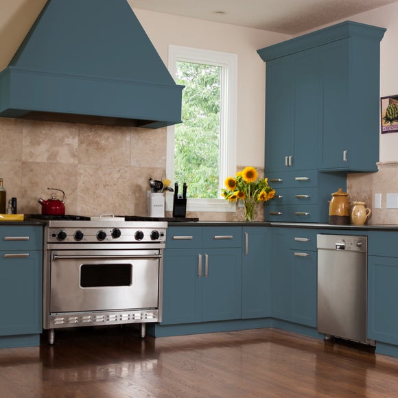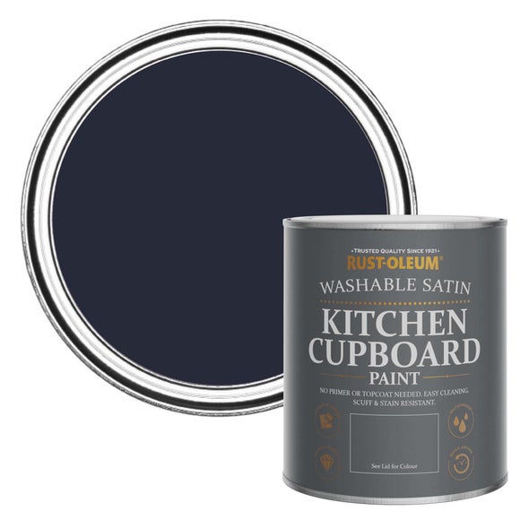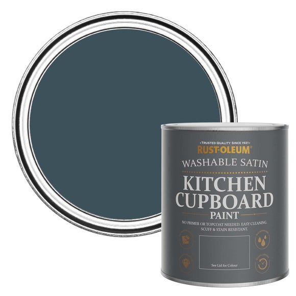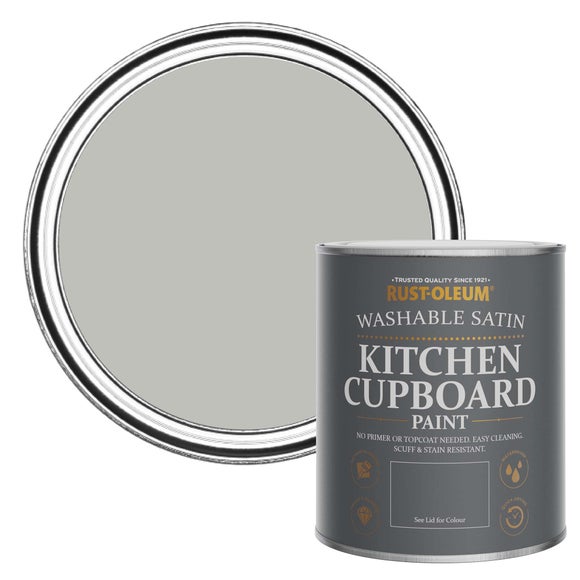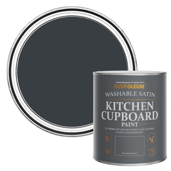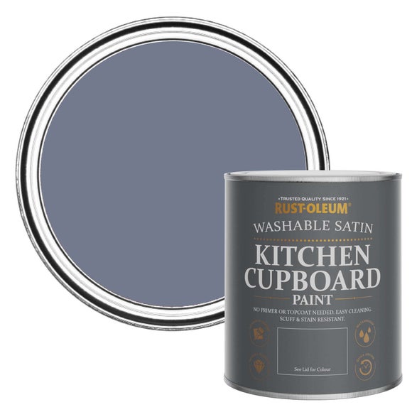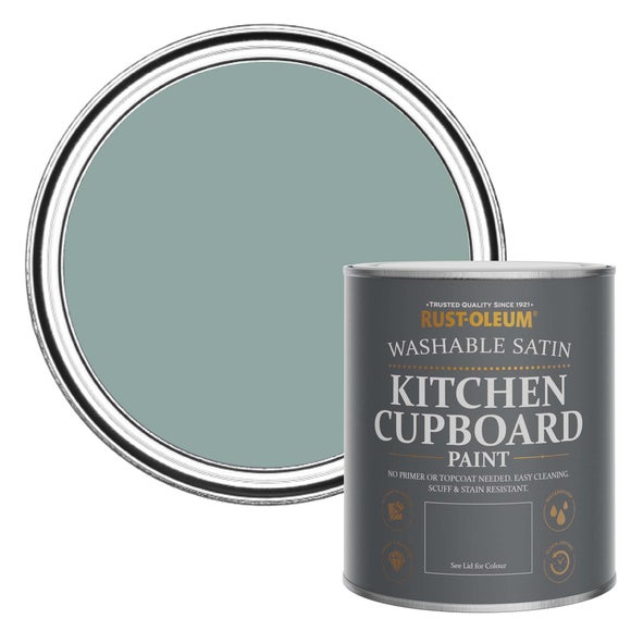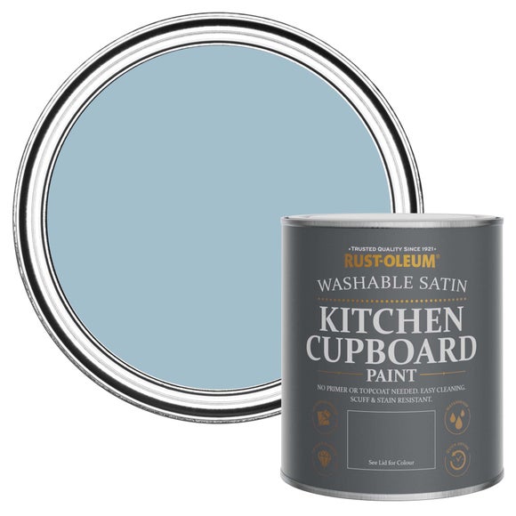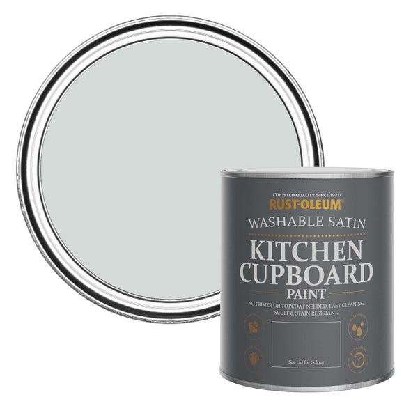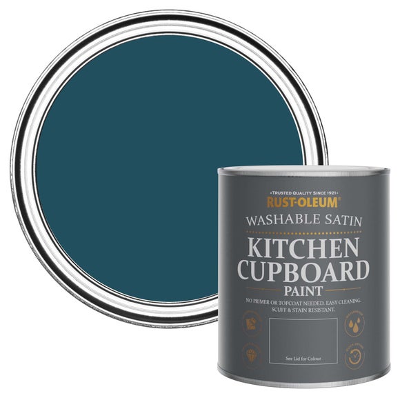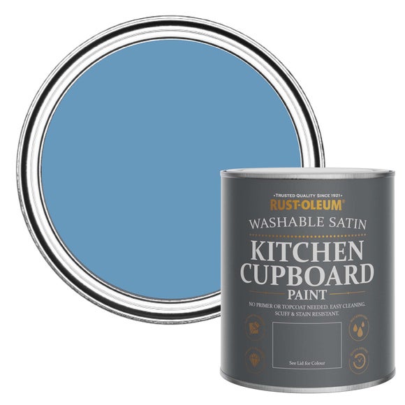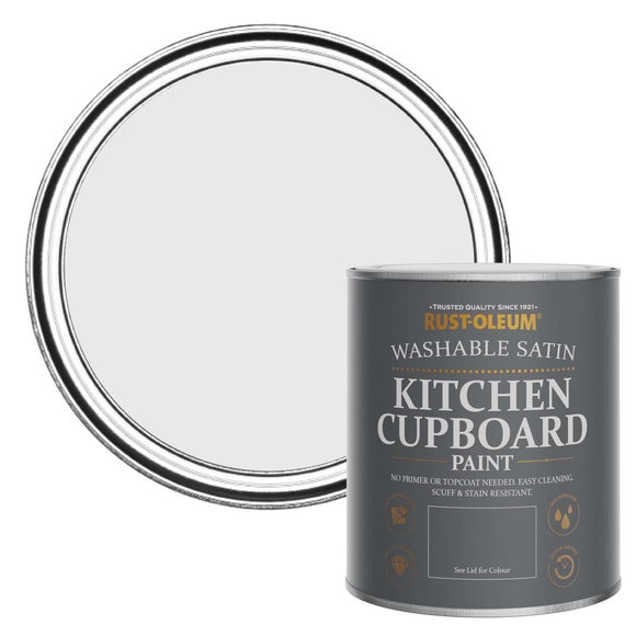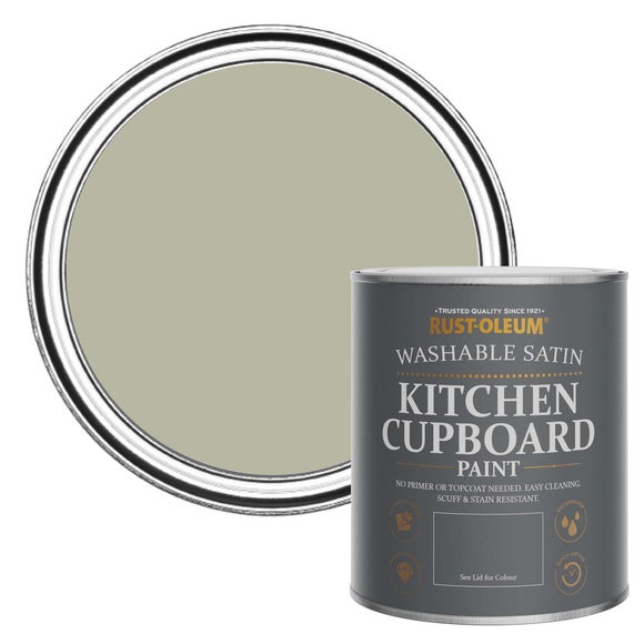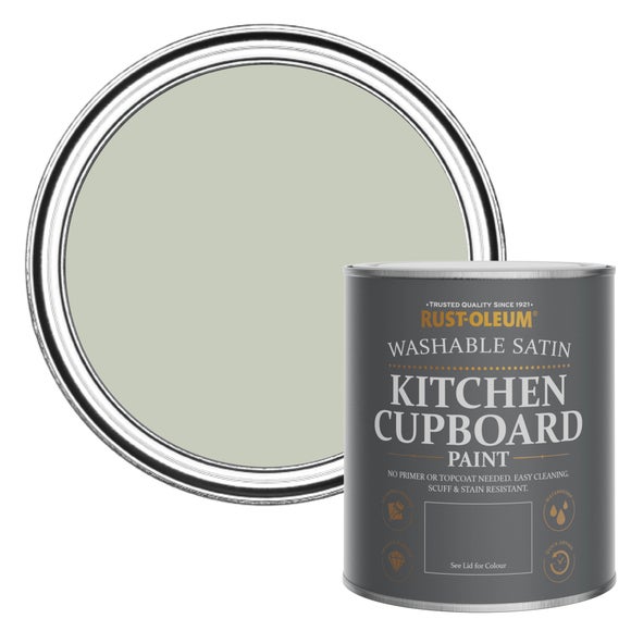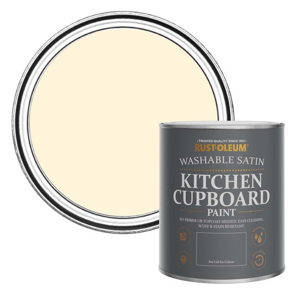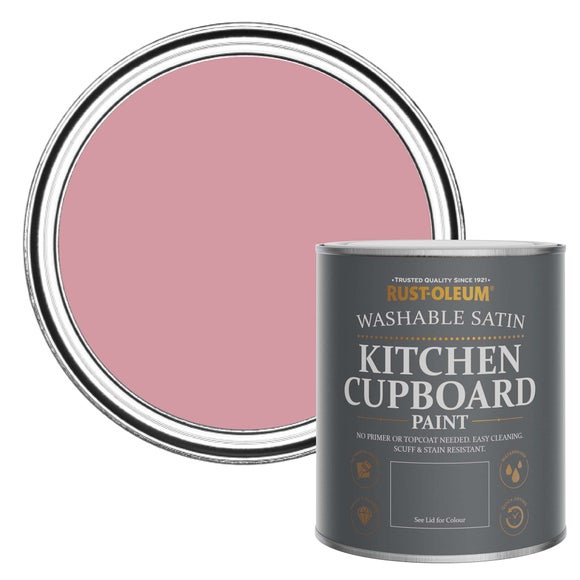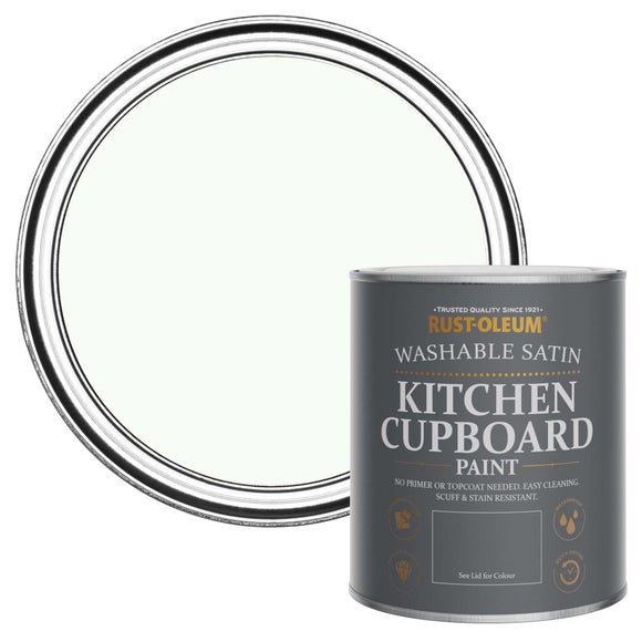 Revamp your kitchen with Rust-Oleum Satin Kitchen Cupboard Paint. This stylish mid-sheen satin finish delivers rich colour depth and a smooth surface that stands up to everyday wear. Designed for wood, laminate and melamine, it requires no primer or topcoat and resists water, stains, and splashes - perfect for busy homes.