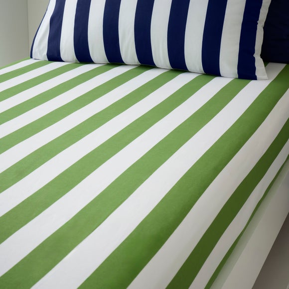 Add a fresh, modern touch to your bedding with this Set of 2 Bold Stripe Cotton Fitted Bed Sheets. Made from 100% cotton, they're soft, breathable and easy to care for, just pop them in the wash for everyday freshness. The bold stripe design brings a stylish twsit to your bedroom, and with two sheets in each pack, you'll always have a spare. Available in a choice of colours and sizes, so you can find the perfect fit for your spae. Pair with matching items to complete the look and make bedtime feel that little bit more special.