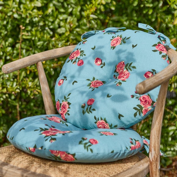 Add a touch of timeless elegance to your dining space with the Round Vintage Rose Seat Pads, featuring a delicate floral design in natural or blue tones. Made from 100% cotton with pin tuck detailing, the heavy-duty ties keep them firmly in place, while the water-repellent coating helps protect against spills and showers. Filled with soft polyester fibre, they’re perfect for everyday use and easy to maintain with a quick machine wash. Ideal for refreshing your chairs with a classic, homely look.