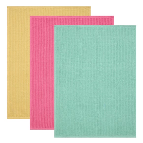 - Set of three ribbed terry tea towels