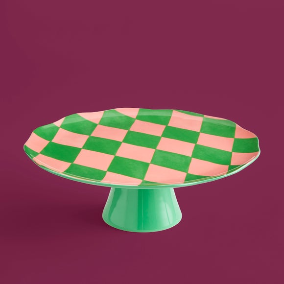 Serve your sweet treats in bold, joyful style with the Sophie Robinson Enchanted Garden Cake Stand. Crafted from fine china, this eye-catching stand features a playful coral and jade harlequin pattern, paired with a sleek jade pedestal base for a statement-making display. Designed to bring fun and personality to your table, this dishwasher-safe stand is perfect for cakes, pastries, and afternoon teas. For the best care, handwashing is recommended to preserve its vibrant colours and intricate detailing. Pair it with other pieces from the Enchanted Garden collection for a beautifully coordinated tablescape.For a fun twist, use it to showcase a colourful assortment of cupcakes or a selection of your favourite biscuits at your next gathering!