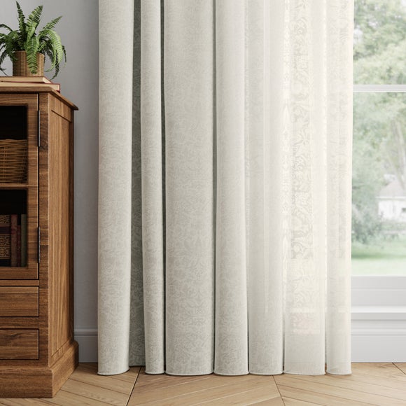 Add sophisticated heritage charm to your room with the Strawberry Thief Sheer Made to Measure voile curtain. Featuring a rich, intricate botanical, floral design, this voile brings a luxurious touch to your space. Available in different colourways to complement your decor, the lightweight fabric is made from recycled polyester to offer the perfect balance of light and privacy. Bespoke to your window dimensions, this voile is available in a range of header options to suit your needs. Achieve a timeless and polished look that celebrates British craftsmanship and design legacy with this beautiful William Morris voile curtain.