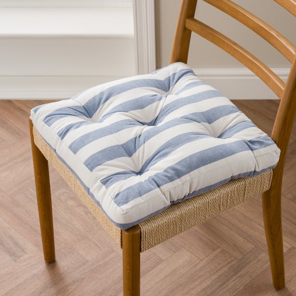 Brighten up your dining space with the Striped Square Seat Pad, designed for comfort and adding a stylish touch to your dining room. Its bold woven stripes and buttoned finish add a fresh, contemporary look to any chair. The box-shaped design offers extra cushioning, the cotton cover feels soft and inviting, and practical ties keep it firmly in place, making it ideal for everyday use. Choose from a variety of colours to perfectly match your décor.