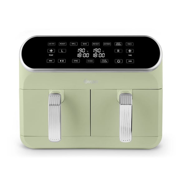 The Swan Dual Basket Air Fryer is made for busy kitchens, with two 4L baskets giving you a generous 8L total capacity. With 1700W power and 8 preset programmes, it’s great for quick midweek dinners and weekend treats alike. The adjustable 40–200°C temperature range puts you in control, whether you’re gently warming or crisping things up. Sync and Dual cooking means you can cook different foods at once – or match them up for the same settings. Twin motors and twin heating elements help both baskets pull their weight, so you’re not waiting around. Finished with a smart matt housing and available in a choice of colours, it’ll look the part on your worktop too.