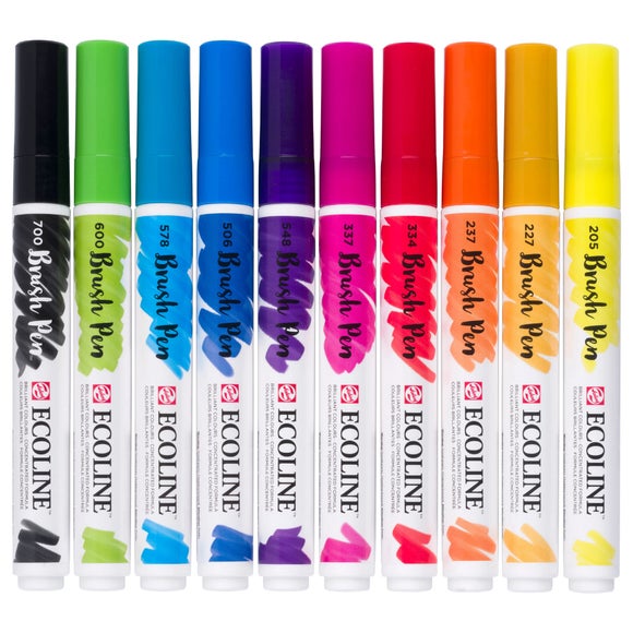 Bring bold colour to your projects with this ready‑to‑use set of vibrant Ecoline Brush Pens. Each pen offers smooth, odourless colour that works just as well for neat, precise details as it does for bigger, expressive areas. The flexible tip gives you the freedom to switch from fine lines to broader strokes in a single movement. Great for travelling or tidier workspaces, they’re designed to keep things clean while you focus on your ideas. Whether you’re sketching on the go or adding final touches, these pens make it easy to create bright, fluid artwork. Blend with water or a blender pen to build soft transitions and beautiful watercolour effects.
